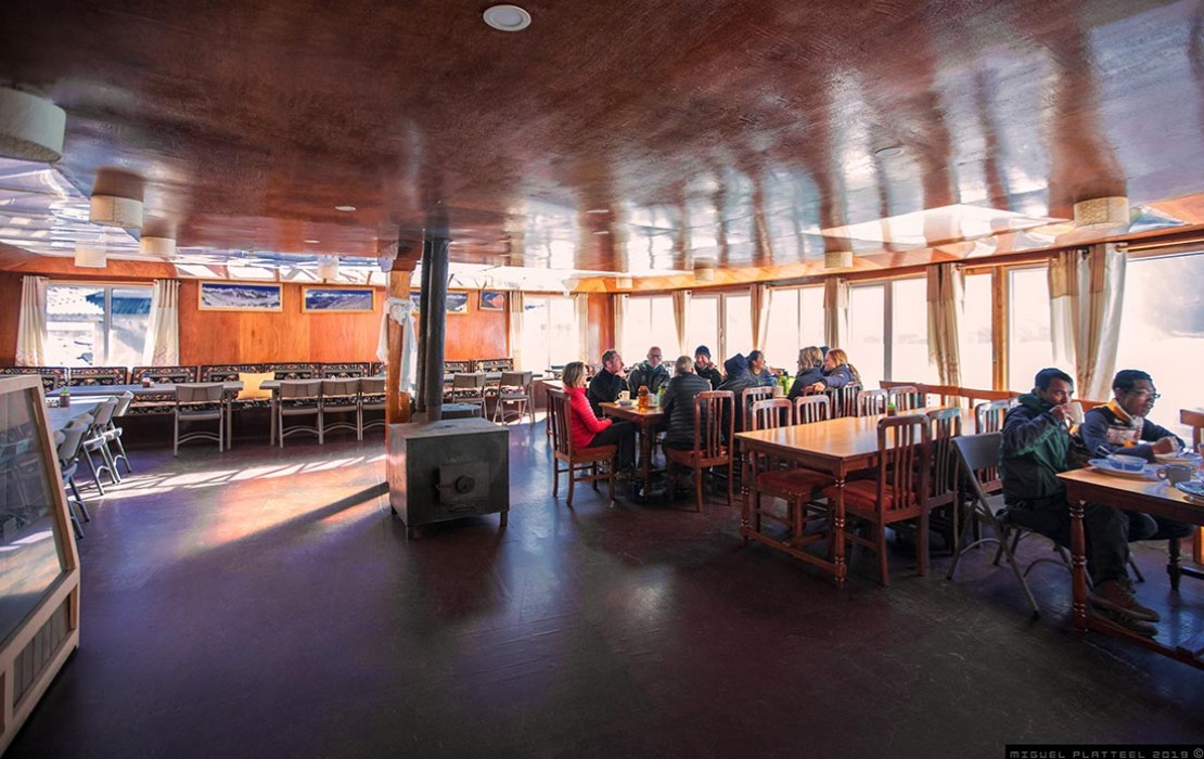 The rustic mountain tavern decor with cozy fireplaces & warming beverages for a relaxing evening. And of course, the delightful choice of wines, cocktails and spirits along with Sherpa hospitality at 4900 m altitude for the more vibrant nightlife experience.